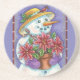 Cute Christmas Girl Snowman with Poinsettia Coaster