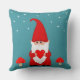Cute Christmas Gnome Dressed in Red on teal Pillow.