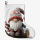 Cute Christmas Gnome with a Candy Cane on a Log Large Christmas Stocking