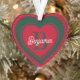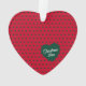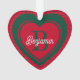 Holiday Folk Art design in Christmas colours has pretty green hearts sprinkled over a red background, and features a large heart design in the centre, showcasing your or your pet's monogram and name. On the back you'll find keepsake text, that reads "Christmas 20xx". Personalise with your monogram, name and the year.