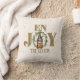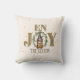 Enjoy the Season Coffee Mrs Gnome Throw Pillow. Get your home ready for the holidays with this adorable coffee loving braided pigtailed girl gnome. This cutie has coffee beans all over her tall hat and holding a latte cup just about as big as her and all on a burgundy coloured background. The golden wreath and deep red flowers form the "O" in enjoy adds to the festive design. There is also a matching male gnome so you can have more than one as a set.