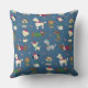 Cute Christmas Holiday Dog Pattern on Blue Cushion