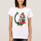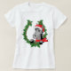 A horseshoe made of holly and a cute Christmas Horse cartoon with hooves over the horseshoe smiling and wearing a Santa Hat - Sizes run a bit small so order larger if you are looking for a sleep shirt -