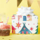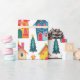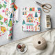 Cute Christmas houses that are so festive and colourful decorate this roll of wrapping paper. Fun scenes of festive little homes in the white snow, in wintry lanes intermixed with star-topped decorated trees. The watercolor pattern has a vintage origin with a retro touch, so popular today.