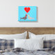 This awesome canvas print features a pair of romantic seals kissing. One seal is light grey and the other is dark grey. The light grey one is wearing a green scarf and hat and the dark grey seal is wearing a red scarf and hat. Above the seals is a pair of red and white candy canes in the shape of a heart, surrounding a red heart with white text inside that says "Sealed with a Christmas kiss. A lovely design for Christmas and for couples spending their first Christmas together.