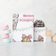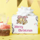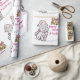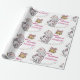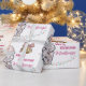 This festive custom wrapping paper features a cute Christmas kitty theme. An image of a little white cat wearing a Santa hat is pictured posing with a candy cane. A string of lights is pictured below the kitten. A "Merry Christmas" greeting is printed in pink below gold bells, followed by a sample name. You can personalise the gift wrap to include your own custom name or text.