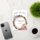 Personalised christmas card with luxury gold foil typography. This design is lettered with Merry Christmas followed by your personalised text which is framed with a rustic wood tree slice, christmas flower bouquet and two cute kitten cats in holiday sweaters.
