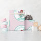 This holiday gift wrapping paper features a cute Under the Sea Christmas theme on a soft pink coloured background. A little mermaid is pictured with a Santa hat, and swimming among coral and starfish. A sample "Merry Christmas" greeting is pictured above the mermaid, with a sample name printed below in an elegant teal font. You can personalise the wrapping paper to include your own custom name or other message.