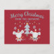 Cute Christmas Mice and Tree on Burgundy Red Postcard