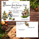 A postcard invitation for a Christmas Party (this is a book club exchange event) features watercolor depictions of fully-clothed mice decorating a mouse-sized tree with a cheese star, seeds and nuts while another mouse sits in the shell of a walnut, with an open book. His seat is backed by an evergreen sprig. But house mouses are everywhere and one is climbing on the "C" in "Christmas Book Exchange Party". He's wearing a yellow shirt and fluffy green pantaloons from which his tail dangles. It is simple to substitute your event details for our placeholders. Just click "Personalise" and get started. The back features the usual postcard format with your return address, a personal message and "Kindly Deliver To:" in the same fonts. In the centre is a (small) watercolor scene of two mice sledding in the snow. Two contrasting playful fonts (in black) have been selected for this fun Christmas Party Invitation.