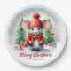 Celebrate in style with this cute Christmas mouse party paper plates. Perfect for decorating your Christmas or holiday party. This watercolor ai art illustration, in cheerful colours, features a cute Christmas mouse and decorated Christmas trees. Playful and charming, it's the perfect way to set the tone for a fun celebration and wish your loved ones a Merry Christmas.