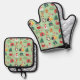 This oven mitt and pot holder features a cute Christmas pattern. It's sure to bring a festive touch to your kitchen.