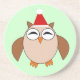 This awesome sandstone coaster features a funny cartoon of a Christmas owl with sleepy eyes, a small orange beak and cute little orange feet. The owl is brown with a cream belly and is wearing a red and white Santa hat ready for Christmas.
