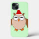 This awesome iPad case features a funny cartoon of a Christmas owl with sleepy eyes, a small orange beak and cute little orange feet. The owl is brown with a cream belly and is wearing a red and white Santa hat ready for Christmas.