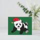 Cute Christmas Panda Bear Santa Hat Green Postcard
