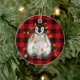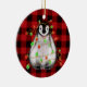 Cute Christmas penguin drawing red black plaid Ceramic Tree Decoration