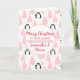 Cute Christmas Penguin Great Granddaughter Pink Holiday Card