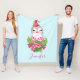A blanket with a cute and whimisical design featuring an adorable penguin wearing a red santa hat. Standing behind a bouquet of flowers with pink and white striped candy canes. Personalise with a name.