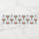 Bottle labels with a cute and whimisical design featuring an adorable penguin wearing a red santa hat. Standing behind a bouquet of flowers with pink and white striped candy canes.