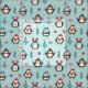 This cute Christmas fabric features a pattern of whimsical penguins wearing red hats on a background of aqua blue with snowflakes and simple pine trees. Use for holiday apparel or craft projects. From our hearts to yours, Happy Holidays!