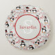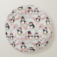 Cute Christmas Penguins Personalised Monogram Round Cushion