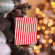 This design features a Christmas cute funny whimsical fun ornament with stylish trendy modern typography design, red-white candy cane stripes, a family photo picture template, creative newspaper newsprint, unique cool the north pole, with Santa Claus elves north pole, cute holiday photo gift idea, a cute Christmas holiday photo home décor, a Christmas holiday tree decoration