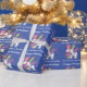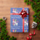 This festive Christmas gift wrap features a cute vintage image of a polar bear carrying several brightly wrapped gifts and a red heart ornament in its mouth. The image is placed on a blue background, with customisable text in white that says Happy Holidays! and your own personalisation. Make it say whatever you'd like. Festive, unique, and colourful! Celebrate the Holidays the old fashioned way with this retro personalised paper. Kids will love it!