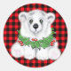 Cute Christmas polar bear Holly wreath red plaid Classic Round Sticker