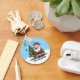 Add your name to personalize this cute Christmas Santa keychain. Spread some festive holiday cheer with this cute, cartoon Father Christmas wearing a red and white Santa hat and outfit, standing next to a green Christmas tree that is adorned with colourful lights and a yellow star. He is holding a lantern to shed some light on the snowy winter scene. below the illustration is a template to add your name to customize.