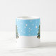 A cute Christmas personalized mug featuring a cartoon potato in a whimsical Christmas scene. The potato is in front of a Christmas tree that has lights attached and a star on top. Ideal for a holiday stocking filler or for your hot cocoa.