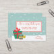 NewParkLane - Business gift certificate, featuring cute little Christmas presents, against an aqua green snowy background. The texts are in a fun handwritten font in red with cute little hearts as dots on the letter i.