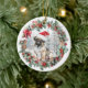 Cute Christmas ornament with a sweet pug dog puppy in a Santa hat in Christmas holly and berry wreath. Personalised dog, puppy, cute animal Christmas ornament (text on the back).