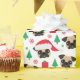 Christmas pug dog breed wrapping paper with trees, presents, snowflakes, Santa hats and pugs!