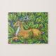 Cute Christmas Reindeer in Forest with Holly Jigsaw Puzzle