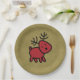 Paper plates with a red Christmas reindeer illustration. Festive and cute. The background is a digital image of brown kraft paper, not actual kraft paper.