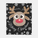 Cute Christmas Reindeer Named White Script Black Fleece Blanket