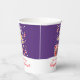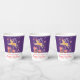 Personalise these festive Christmas paper cups with your own name. Fun Christmas purple-blue, bright red, warm golden yellow and white design of a reindeer with a red nose prancing over boxed Christmas gifts with stars. Ideal for easy Christmas parties with family, friends, or clients. © Original art and graphic design by Sarah Trett for www.mylittleeden.com on Zazzle.