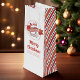 Celebrate the holidays with our modern Christmas holiday wine gift bags featuring a cute Xmas design with festive reindeer. The stylish and trendy look combines a rustic red and white palette with charming retro vintage vibes. Perfect for a casual gathering, the Santa Claus and The North Pole details add a whimsical touch to this informal yet festive bag. Make your gift stand out with this delightful blend of tradition and fun!