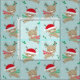 Cute Christmas Reindeer Santa Hats on Light Blue Fabric