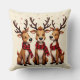 Cute Christmas Reindeer Trio with Plaid Scarves Cushion