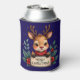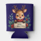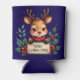Cute Christmas Reindeer with Holly and Sign Can Cooler