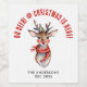 Embrace the festive spirit with this charming wine label exclaiming "Oh deer! Christmas is here " in red bold curved typography. Delightfully adorned with a whimsical watercolor illustration of Rudolph The Red Nosed Reindeer against a crisp white backdrop, it brings a playful touch to your holiday celebrations. Personalise it with your name, adding a special, customised flair to your bottles. Spread joy and cheer with this adorable label, a delightful addition to your seasonal decor.