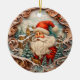 Introducing our charming and whimsical Santa Claus ornament! Perfect for celebrating the holidays, this cute ornament depicts a Santa by a cottage in a winter wonderland pine forest. The exquisite attention to detail and vibrant colours make this ornament a true standout on any tree. You can personalise it with your family name on the back. This makes it an excellent gift for loved ones and friends, or a keepsake to cherish for years to come.