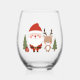 Cute Christmas Santa & Reindeer Stemless Wine Glass