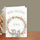 Personalised Christmas Card with winter berry wreath and cute snowman. The template is set up for you to add a name to the front of the card and you can also edit the message inside. The wording on the front simply reads "Merry Christmas [name]" and the design is decorated with a rustic twig wreath with winter berries and two happy litle snowmen.