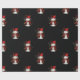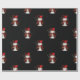 A cute Christmas pattern of a snowman in a red velvet hat and jacket, with gold stars around him, repeated across a black background to add a touch of cuteness and holiday cheer to your gifts this Christmas season.