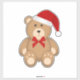 Cute Christmas Holiday Teddy Bear Wearing Santa Hat and Red Bow Sticker.
