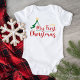 Celebrate your baby’s first holiday season with this My First Christmas baby one-piece featuring a simple Christmas tree, star accents, and bright festive colors.