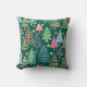 This cute holiday throw pillow will add cheer to your holiday home décor. It features a whimsical pattern of Christmas trees in red, green, pink and blue on a forest green background. Illustrated by world renowned artist Tim Coffey.