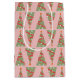 Cute Christmas Tree Holiday Pattern Pink Green Red Medium Gift Bag